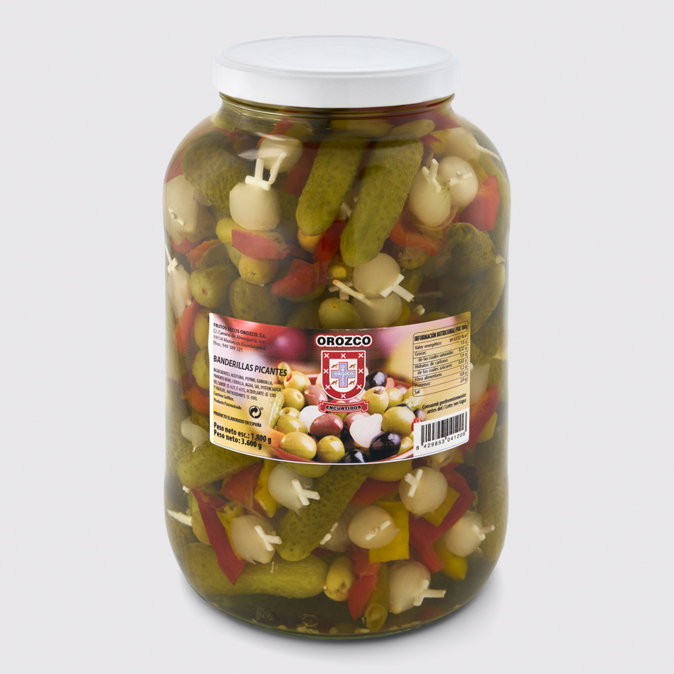 Una opción llena de carácter que despierta el apetito. Nuestras banderillas picantes combinan pepinillos crujientes, aceitunas y cebolletas, acompañadas guindilla que aportan ese toque vibrante y ligeramente picante que enciende cualquier aperitivo. Una mezcla que no solo llama la atención por su color, sino que también sorprende por su sabor intenso y estimulante.