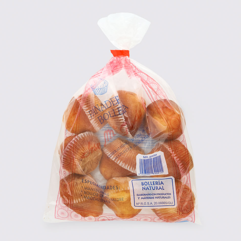 Magdalenas clásicas elaboradas con una masa tradicional, esponjosa y aromática, horneadas lentamente. Su forma redonda y su textura suave esconden un sabor auténtico que hace honor a la bollería casera de toda la vida.
